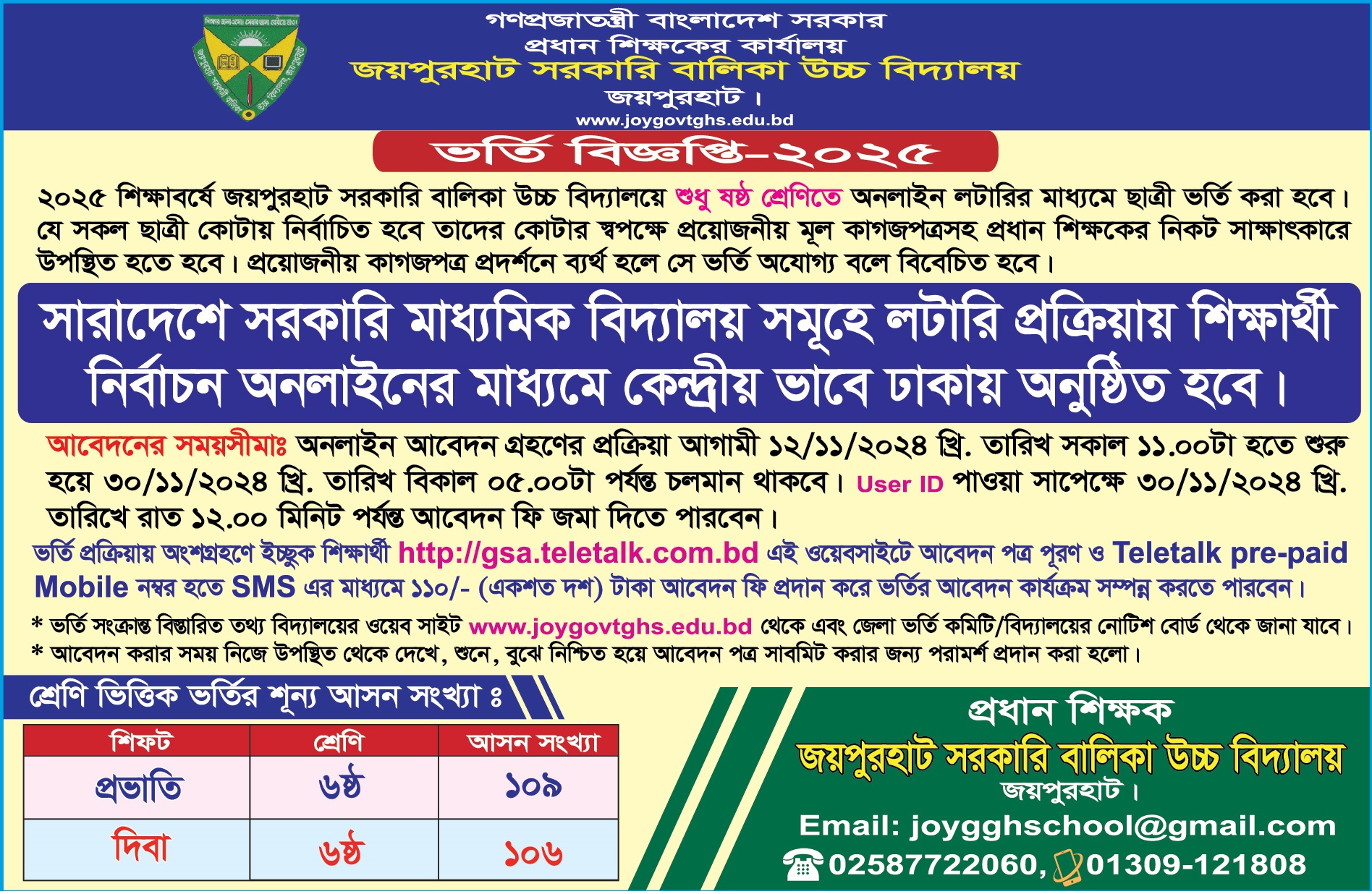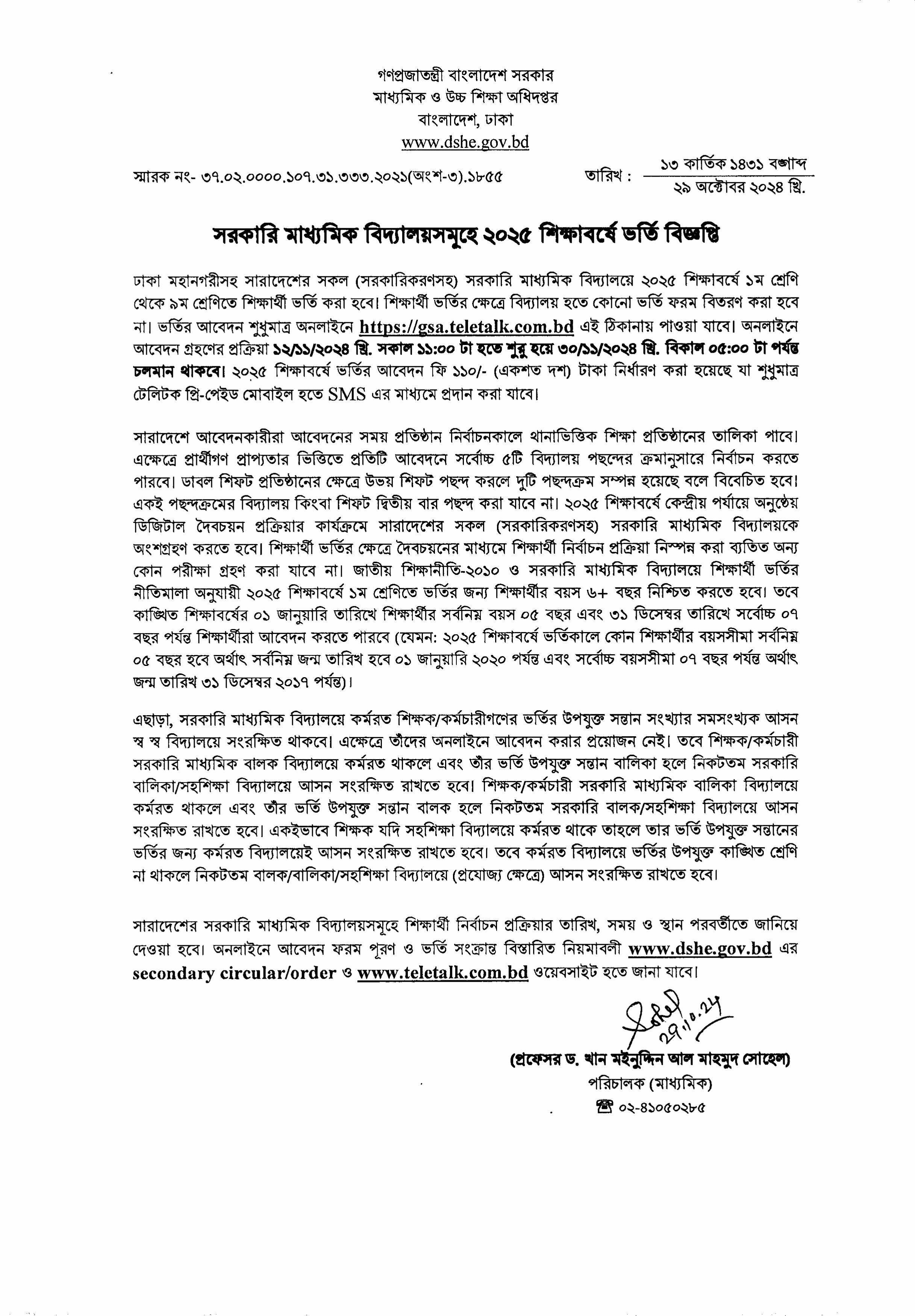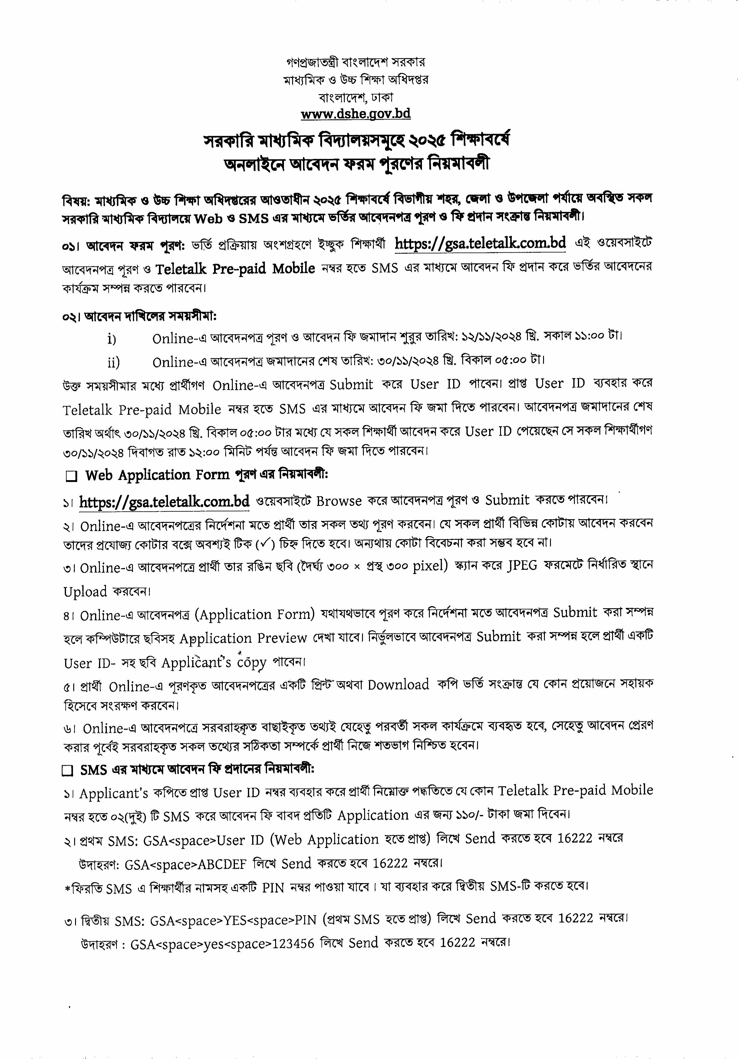 সরকারি মাধ্যমিক বিদ্যালয়সমুহে ২০২৫ শিক্ষাবর্ষে ভতিজ্ঞপ্তি নিয়মাবলি
